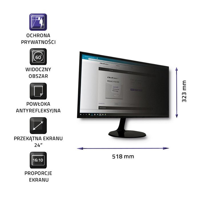 Filtr prywatyzujący RODO Qoltec 24″ (16:10)