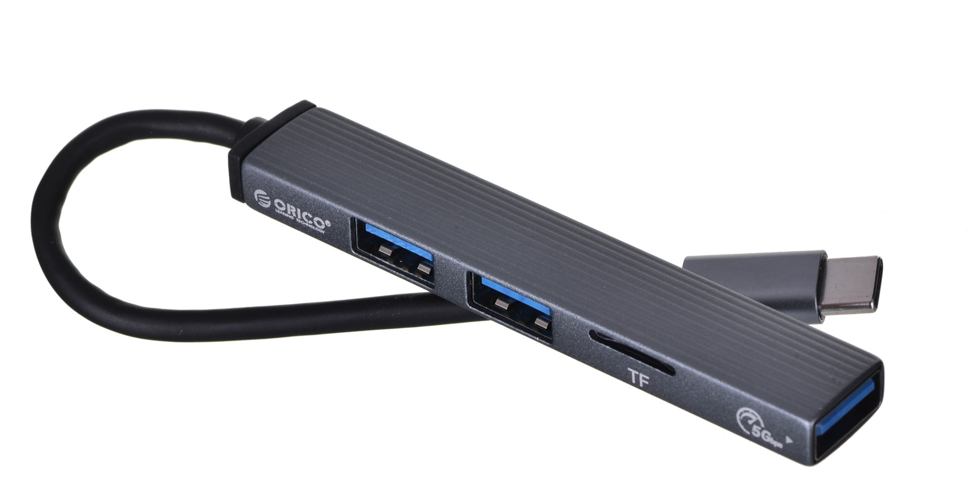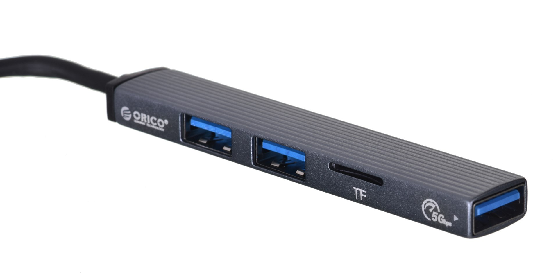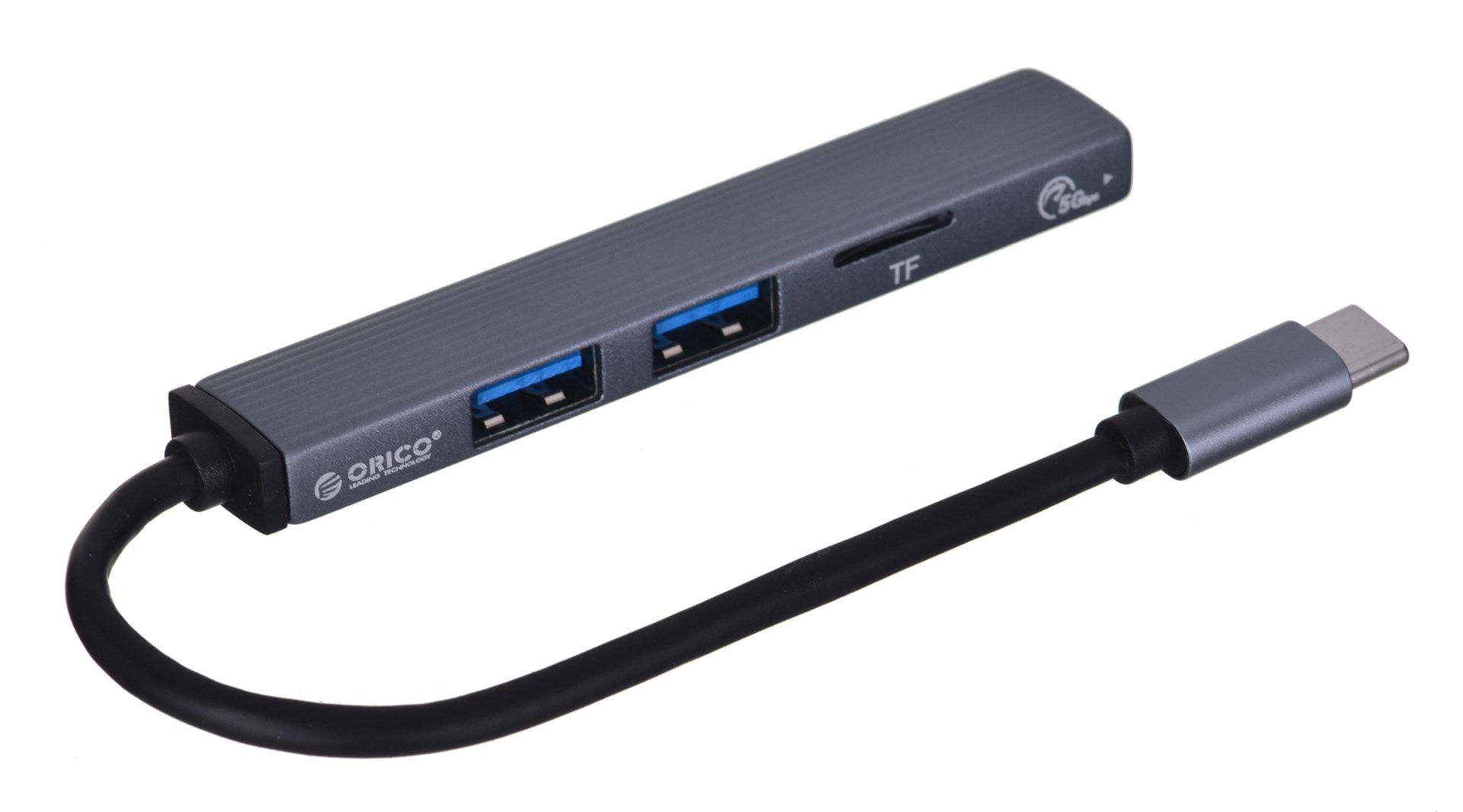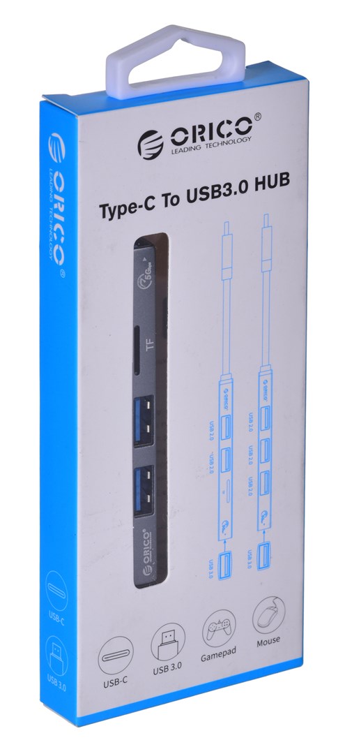 Hub USB-C, czytnik kart Orico AH-12F-GY-BP 3xUSB-A 3.1 Gen1, 5Gbps, alu