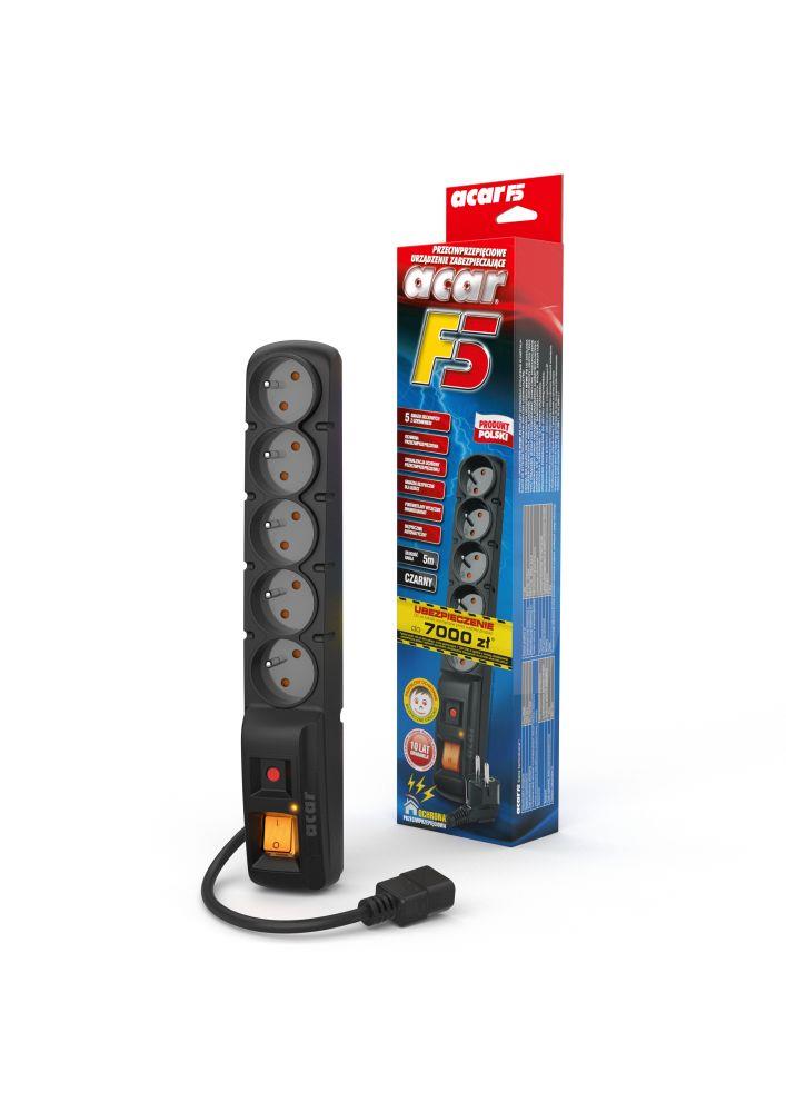 Listwa przeciwprzepięciowa Acar F5 IEC 5,0m czarna