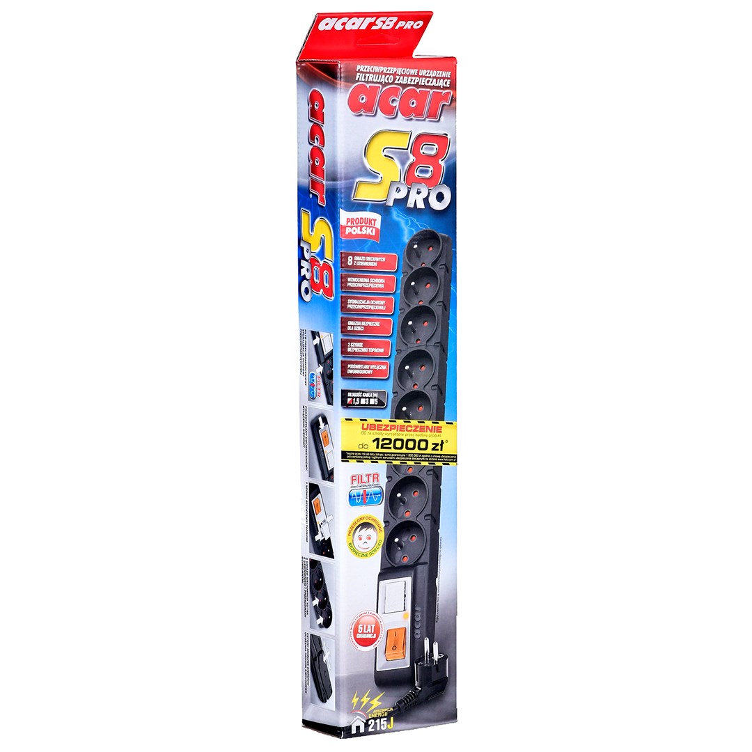 Listwa przeciwprzepięciowa Acar S8 Pro 1,5m czarna