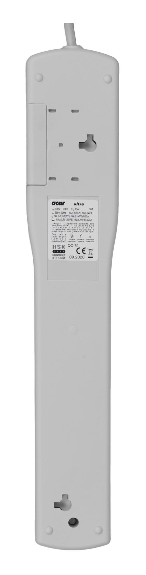 Listwa przeciwprzepięciowa Acar XP ULTRA 1,5m szara