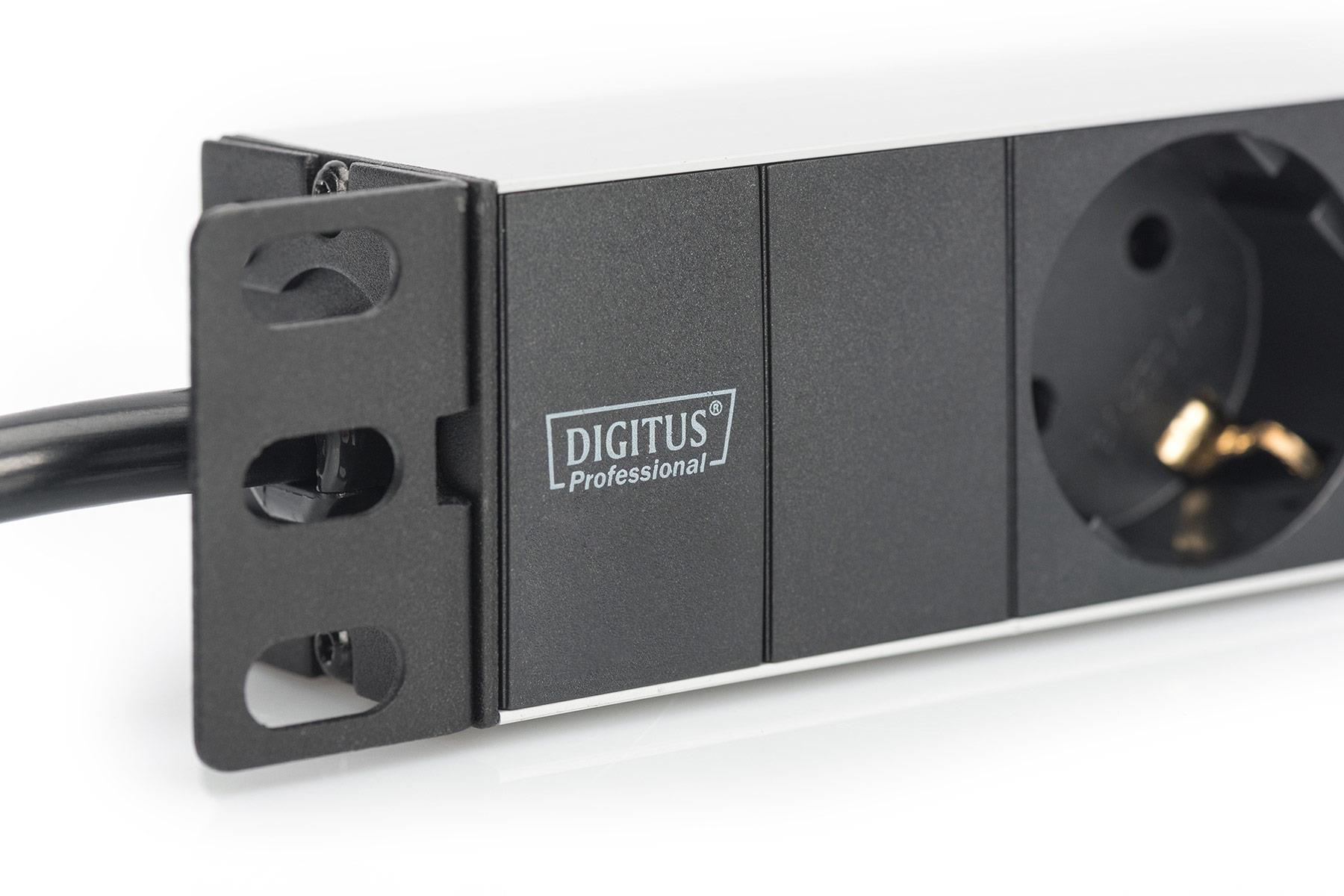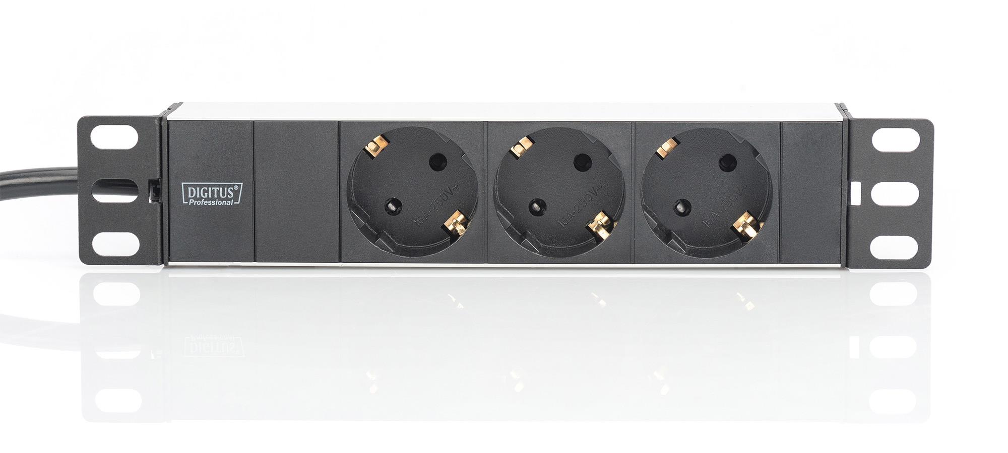Listwa zasilająca DIGITUS do szaf 10″ RACK 3xSchuko, 2m 1xSchuko, 16A, aluminiowa