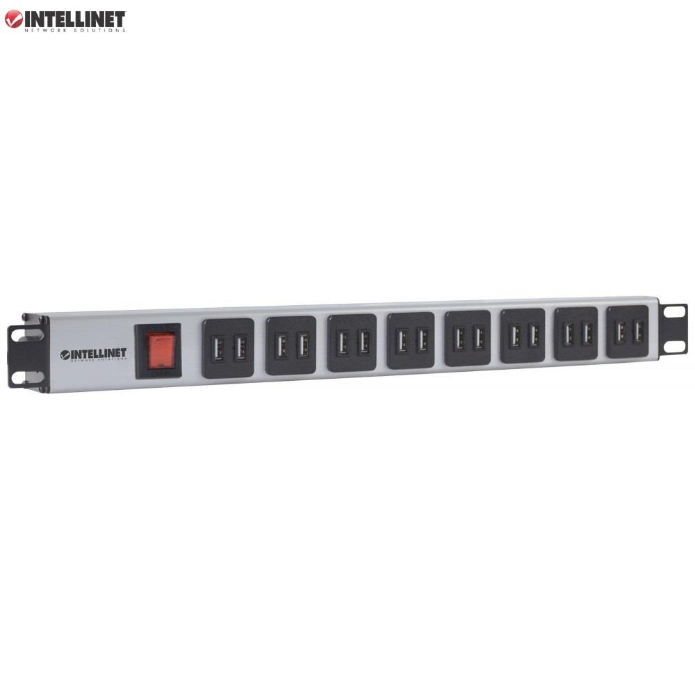 Listwa zasilająca Intellinet Rackowa 19″ 1U, 16 gniazd USB, Typ A, 2m