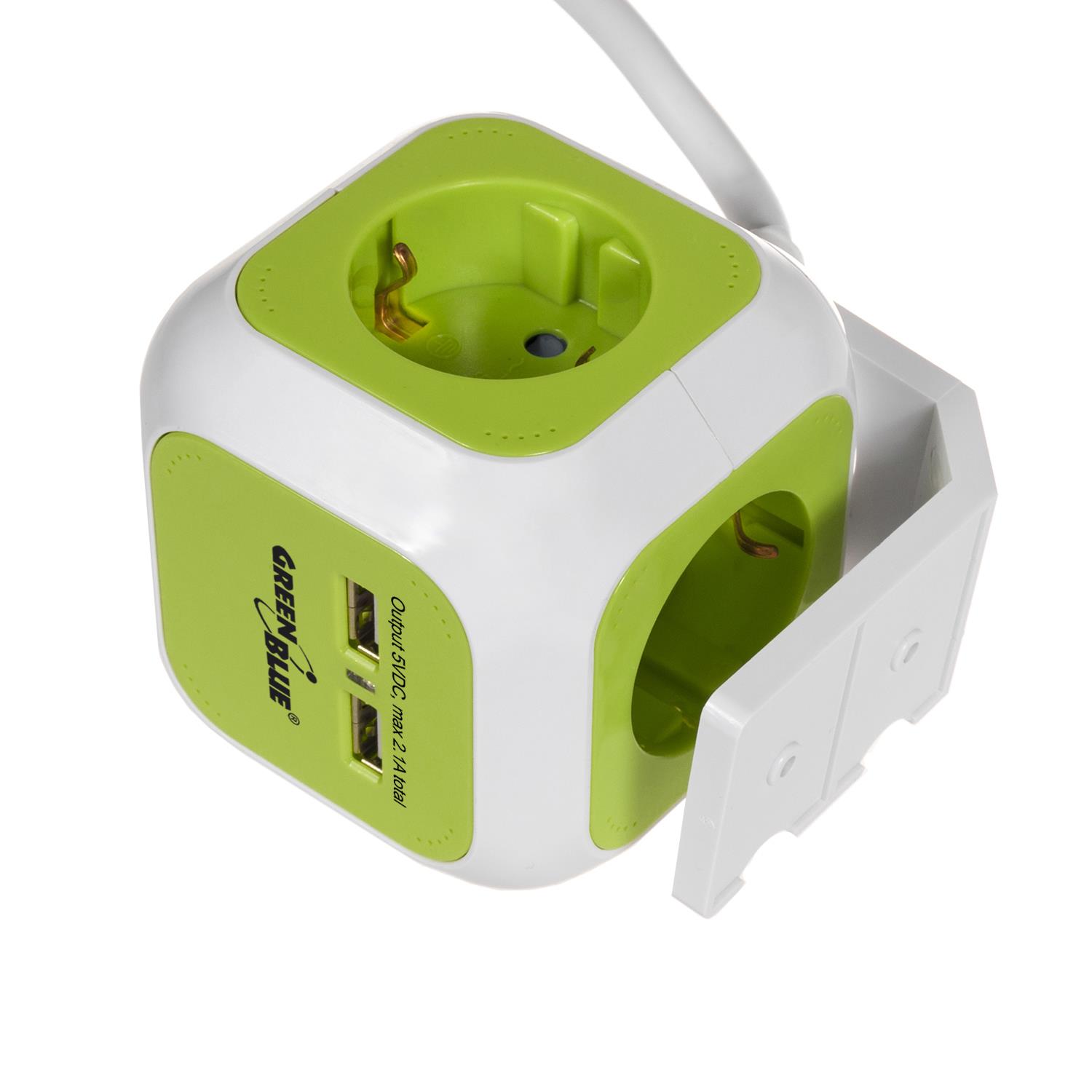 Listwa zasilająca przedłużacz GreenBlue GB118G MagicCube poczwórne gniazdo prądowe, 2 wejścia USB 1,4m wersja niemiecka