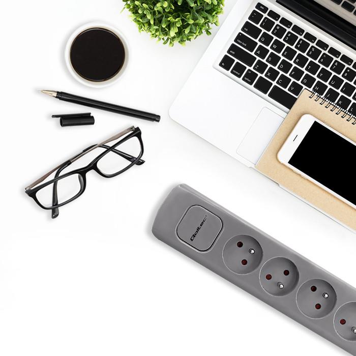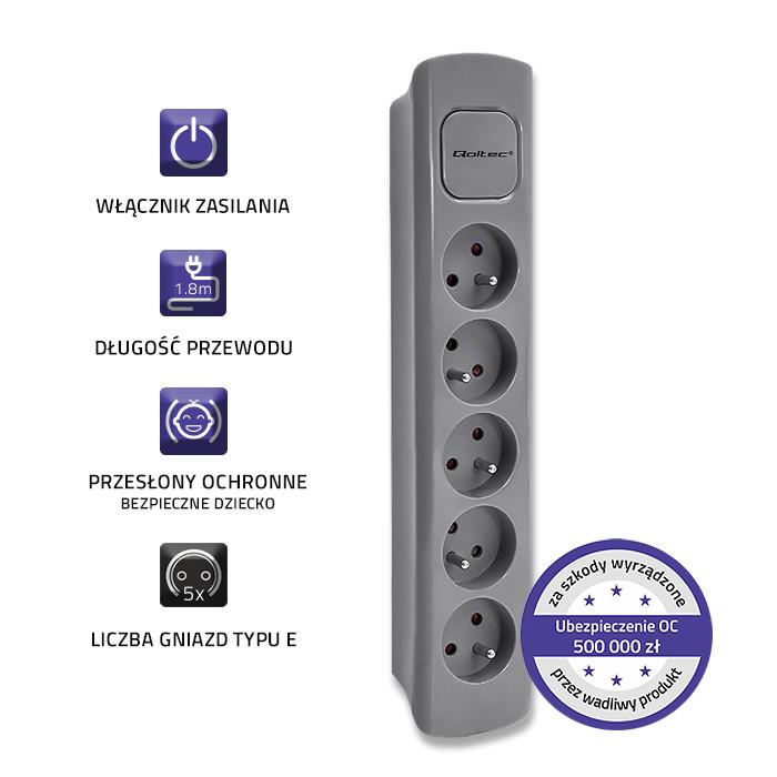 Listwa zasilająca Qoltec 5 gniazd | 1.8m | Szara