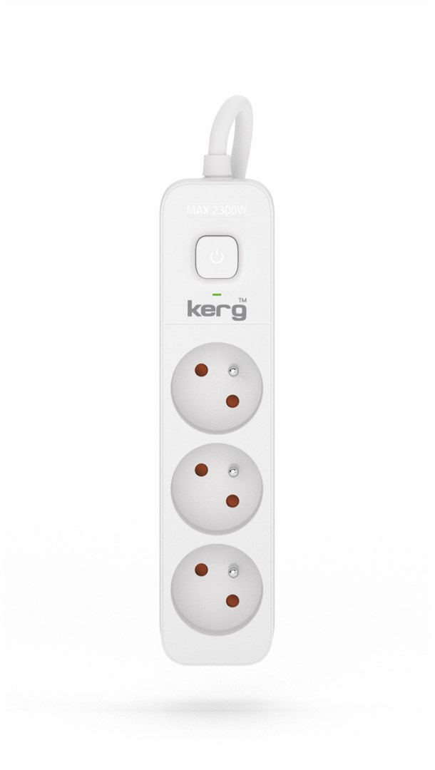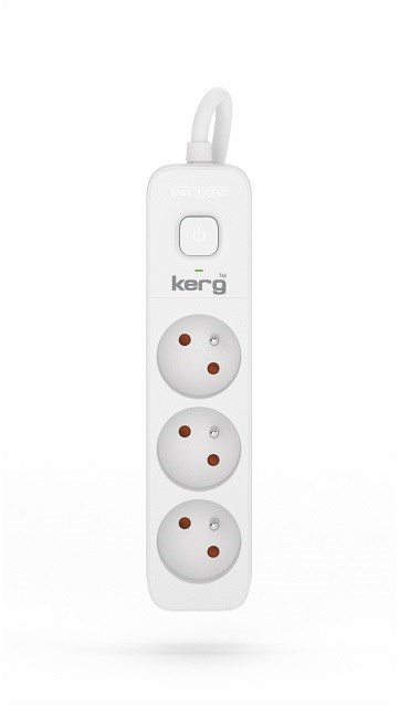 Przedłużacz KERG z wyłącznikiem M02377 3-gniazdowy 5m 3×1,0mm2 H05VV-F 10A/250V biały