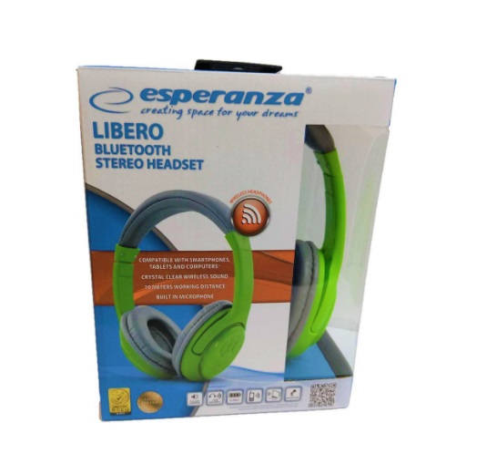 Słuchawki z mikrofonem Esperanza Libero bezprzewodowe szaro-zielone