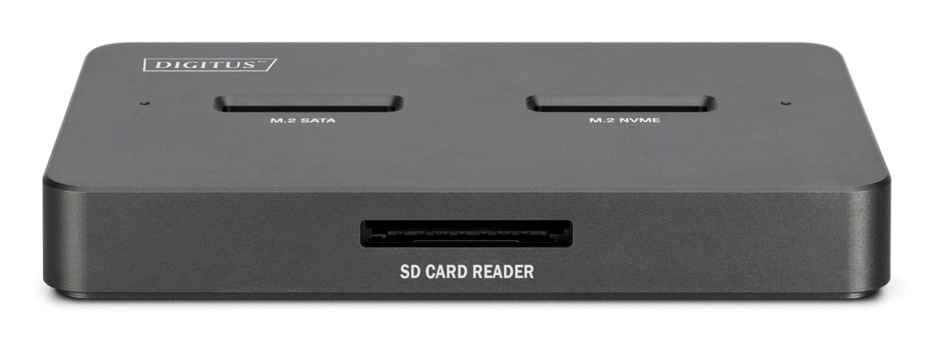 Stacja dokująca DIGITUS USB-C 3.2 Gen2 dla dysków SSD M.2 Duo NVMe oraz SATA (max. 2x 4 TB) z czytnikiem kart SD-Express 7.1 (max. 2 TB), czarna