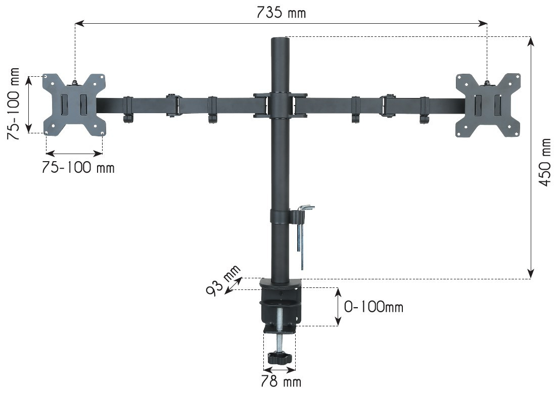 Napisz pierwszą opinię o „Uchwyt biurkowy Techly 13″-27″, 2x10kg na 2 monitory, obrotowy”
