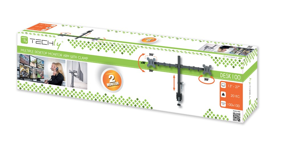 Uchwyt biurkowy Techly 13″-27″, 2x10kg na 2 monitory, obrotowy